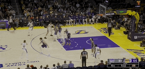 东契奇和肯纳德在本节后段连续外线开火帮助湖人大比分领先结束首节,首节结束,湖人36-18国王。