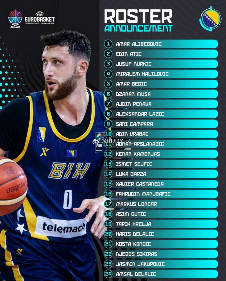 实力强劲!努尔基奇&加尔扎领衔波黑男篮,集结6天后与中国男篮进行热身赛