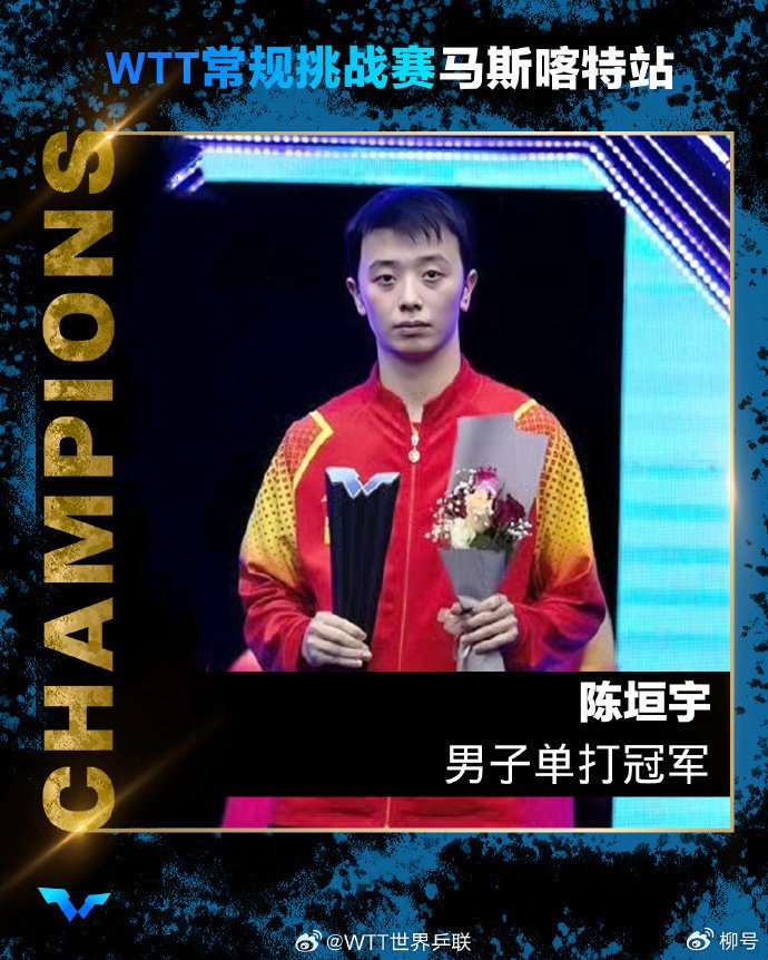 最终,陈垣宇凭借强势发挥,晋级马斯喀特站男单决赛。而他在冠军战的对手是男单1号种子张本智和,后者是夺冠最大热门。面对1号种子,当时只有19岁的陈垣宇打得非常出色,总比分4-2夺得冠军。